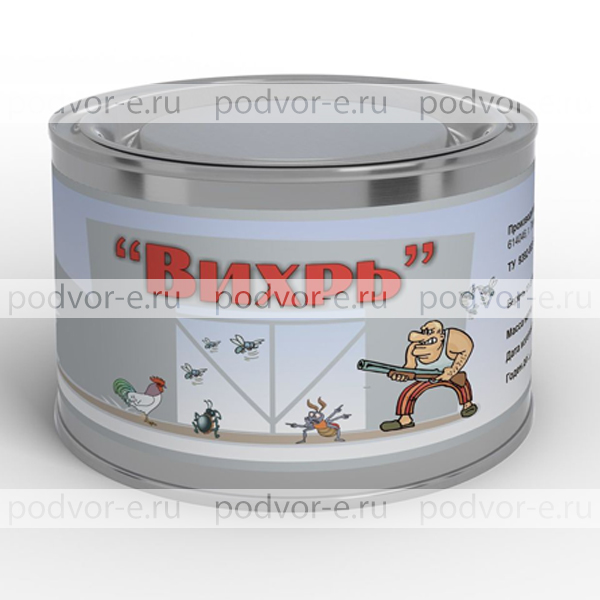 Аэрозоль перметрина, получаемый путем возгонки шашки Вихрь, обладает выраженным контактным и кишечным действием на эктопаразитов, обитающих в животноводческих помещениях, в том числе мух, комаров, постельных клоuов, куриных, персидских и иксодовых клещей.
