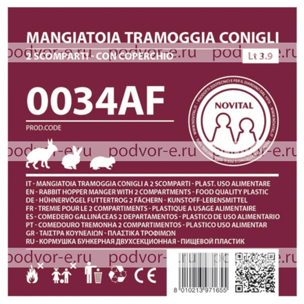 Кормушка для кроликов 2 секция пластик с крышкой