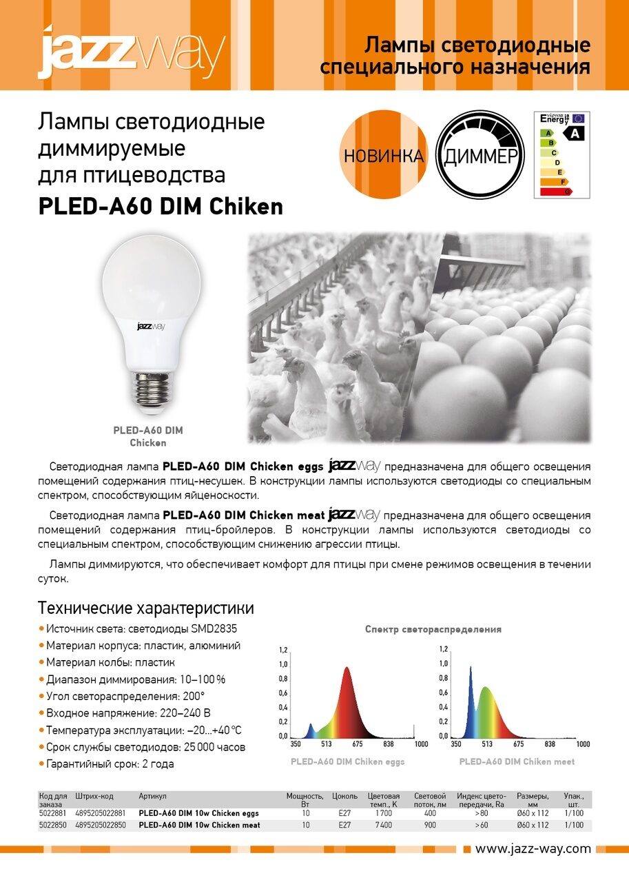 Лампа диммируемая для повышения яйценоскости