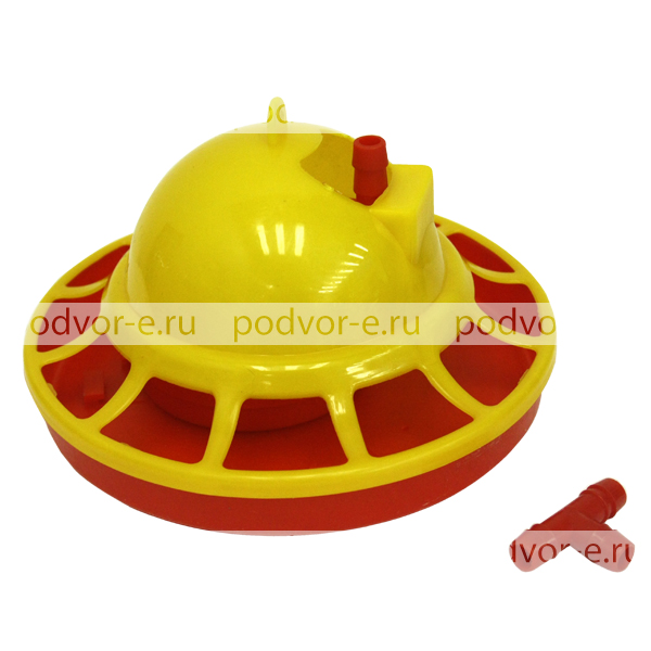 В комплект колокольной поилки для молодняка входят: поилка (диаметр основания 17 см), клапан-врезка для водопровода, тройник 10 мм.