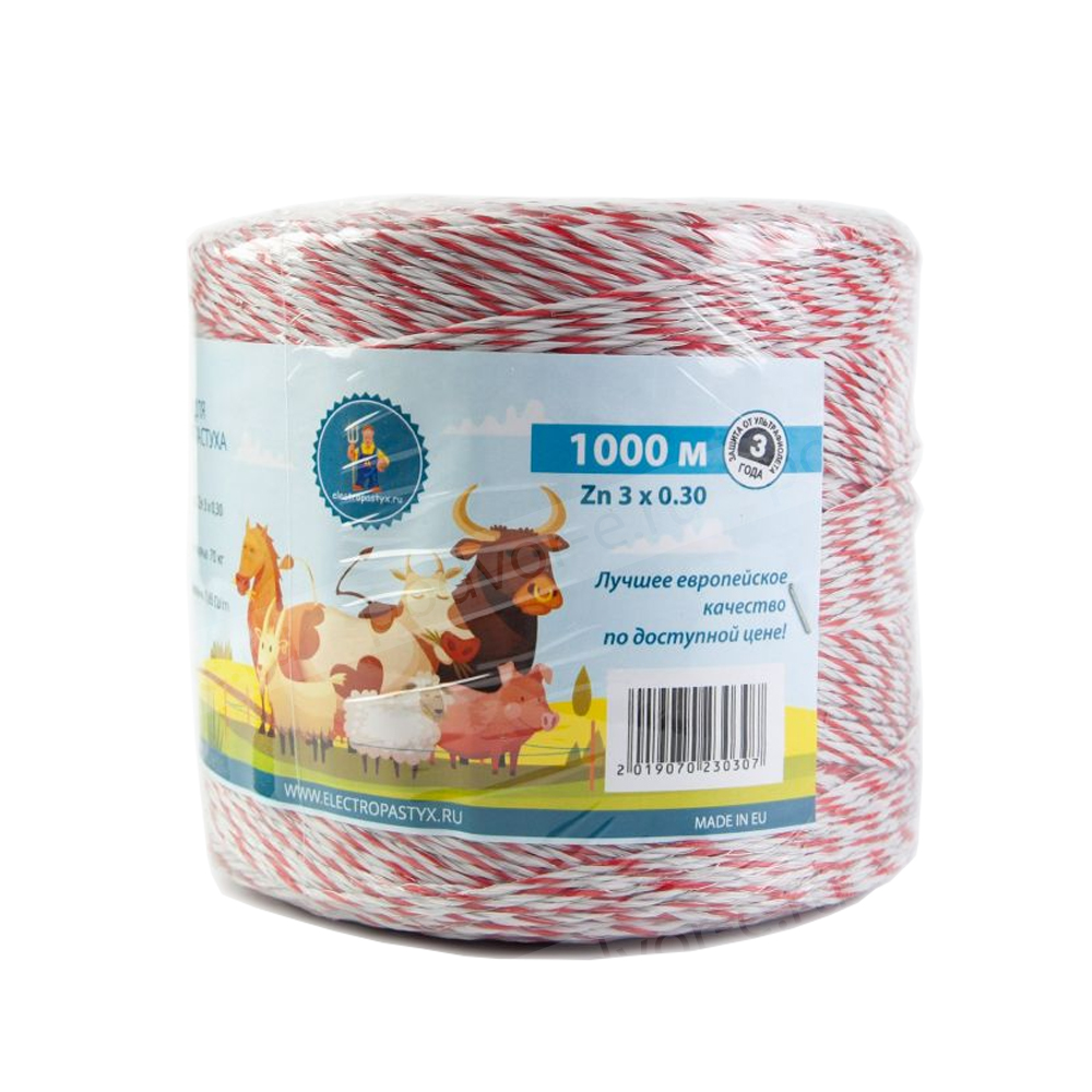 Верёвка для электропастуха 3-ех жильная 0,3 мм (1000 м)
