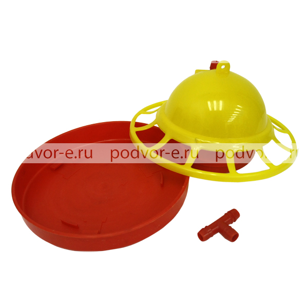 В комплект колокольной поилки для молодняка входят: поилка (диаметр основания 17 см), клапан-врезка для водопровода, тройник 10 мм.