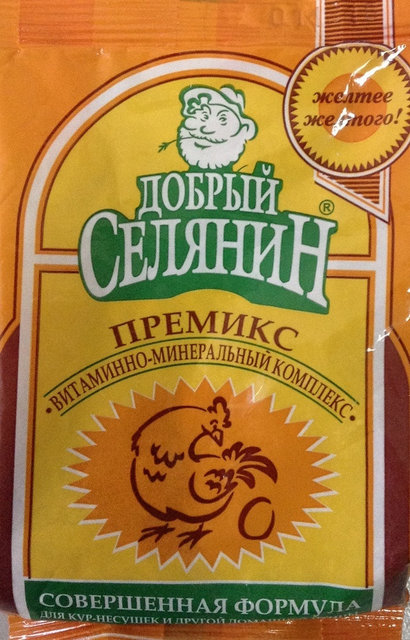 Премикс Добрый селянин для несушек содержит: витамины, микроэлементы, аминокислоты, необходимые для полноценного обогащенного корма, а так же каротиноиды.