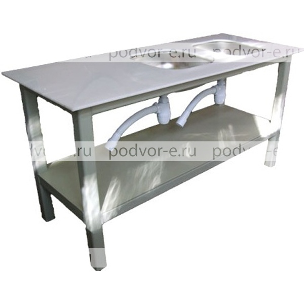 Стол для разделки и мойки тушек с двумя раковинами и полкой