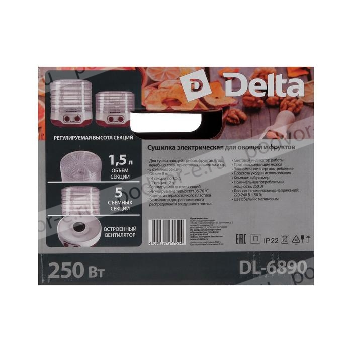 Сушилка для овощей и фруктов DELTA DL-6890, 5 ярусов